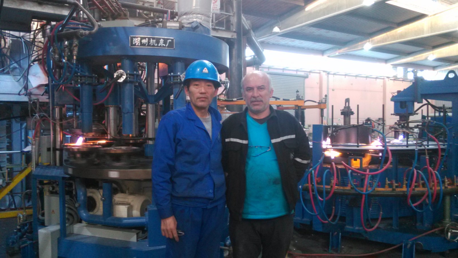下图是该分厂出口土耳其全自动玻璃器皿生产线在土耳其生产现场安装调试与试生产情形: