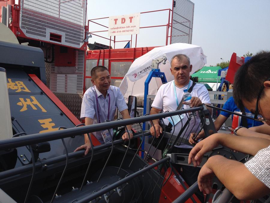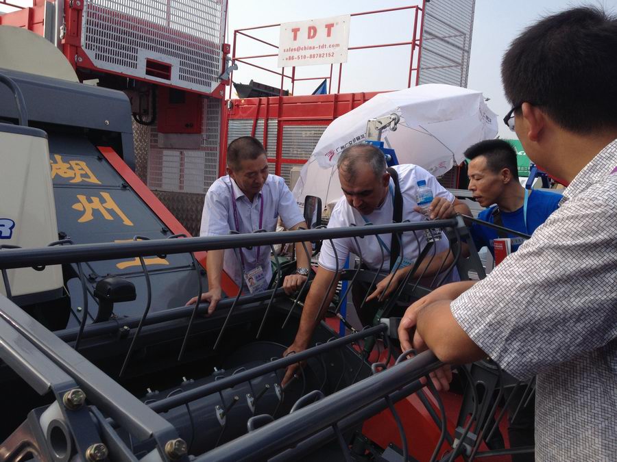 农机工程机械展区分布于B区室外,展位温度较高,但这丝毫没有降低参展商和采购商的热情。来此参观的采购商对思达的收割机产生了浓厚的兴趣,尽管是第一次参加广交会,但还是得到了不少的收获。几天来有交流接触洽谈的客户几乎涵盖了整个非洲,南美,中东和东南亚,还有部分来自英美等发达国家的客商也对我们的产品有一定的兴趣。不仅人数众多,而且对产品洽谈非常仔细,相信未来思达收割机产品的国外市场应该会有一个很好的发展前景。